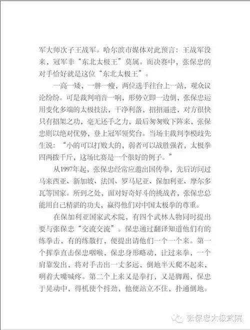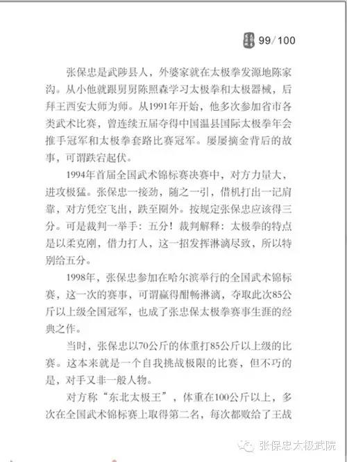 在2015·温县陈家沟景区旅游推介会上,温县为与会领导与来宾赠送了《陈家沟太极拳系列丛书》。分别为《陈家沟太极拳渊源发展》《陈家沟历代宗师故事》《陈家沟太极名家故事》《陈家沟太极养生保健》。其中,张保忠院长事迹以《四两拨千斤、太极展神威》为题,与众多太极名家一同入选丛书之《陈家沟太极名家故事》。